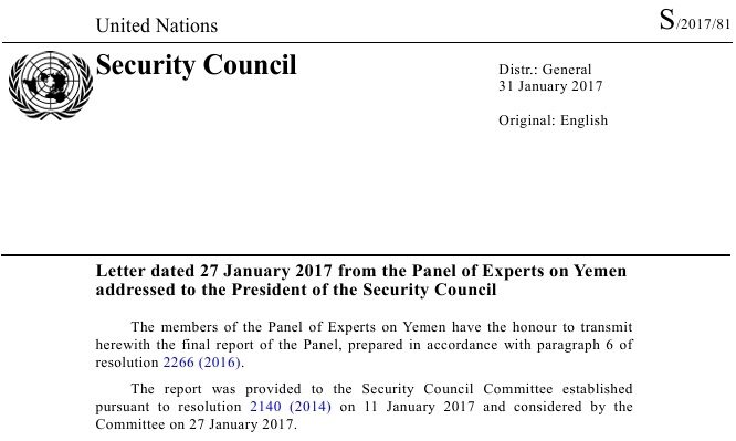 6. Annex: Extracts from the UN Panel of Experts on Yemen Report (S/2017/81, 31 January 2017). Link: https://www.securitycouncilreport.org/atf/cf/%7B65BFCF9B-6D27-4E9C-8CD3-CF6E4FF96FF9%7D/s_2017_81.pdf